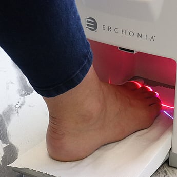 Photodisinfection therapy is a simple and easy system to use in the clinic. The technology works by stimulating the production of reactive oxygen species, which effectively destroy the membrane of the fungal cells. The serum used is a non-toxic formulation containing a blue dye molecule that preferentially binds to fungal microorganisms. The serum has a lower surface tension than water, making it very easily absorbed. It is delivered via a single-use pen of 1ml and it has the ability to be absorbed by a well-debrided or fenestrated nail plate. The serum molecules attach to the fungal cells when the nails are soaked for 15 minutes. The feet are then placed under the Red LED therapy light for a further 15 minutes to complete the treatment.