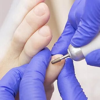 This is not a treatment for fungal nails but a maintenance for those that have significantly progressed fungal nails infections. The clinicians at Fungal Nail Solutions are trained to care for your fungal nails. Fungal nail infections that have progressed significantly can become thickened and extremely hard to self-manage. We start by thinning your nails down with our specialist drill before trimming your nails and debriding any remaining fungal to ensure that your nails are looking as presentable as possible.
